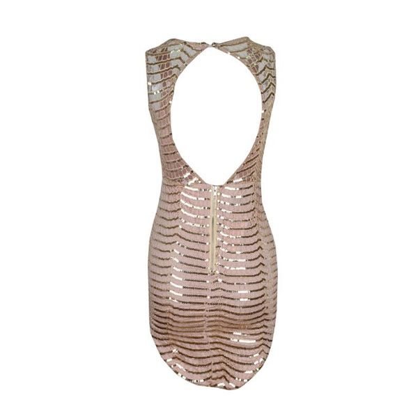 Gold Metallic Bodycon Sequined V-Neck Dress