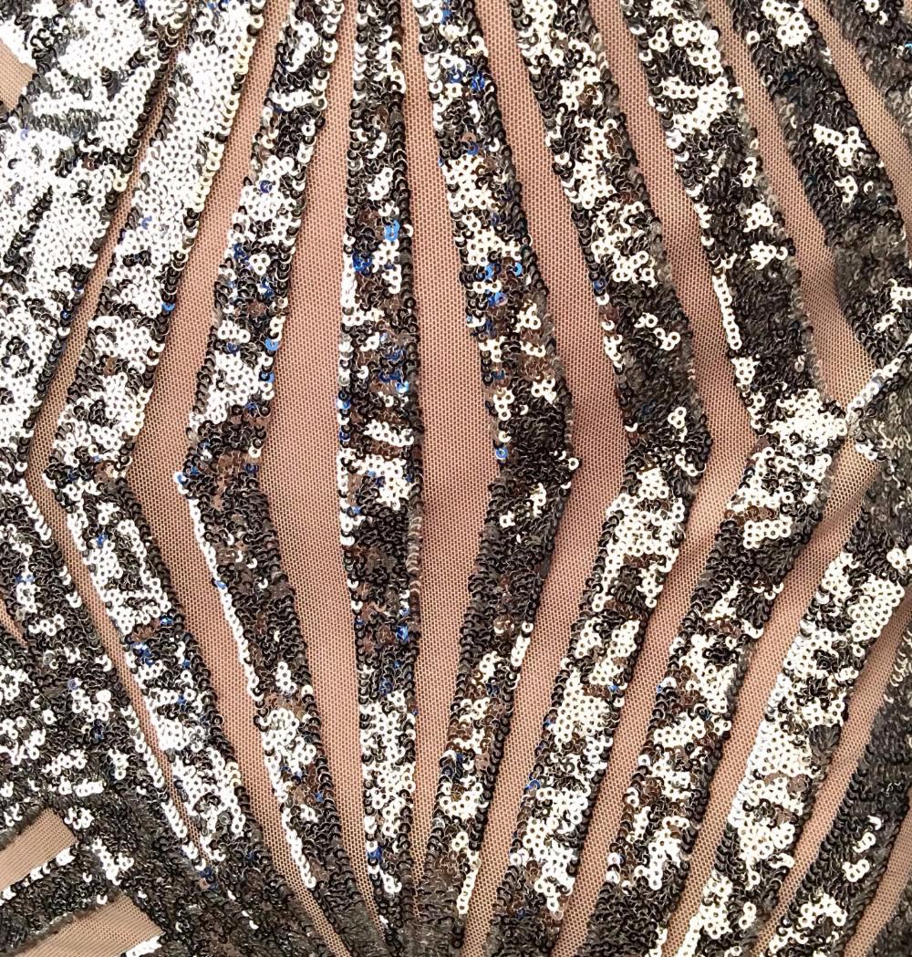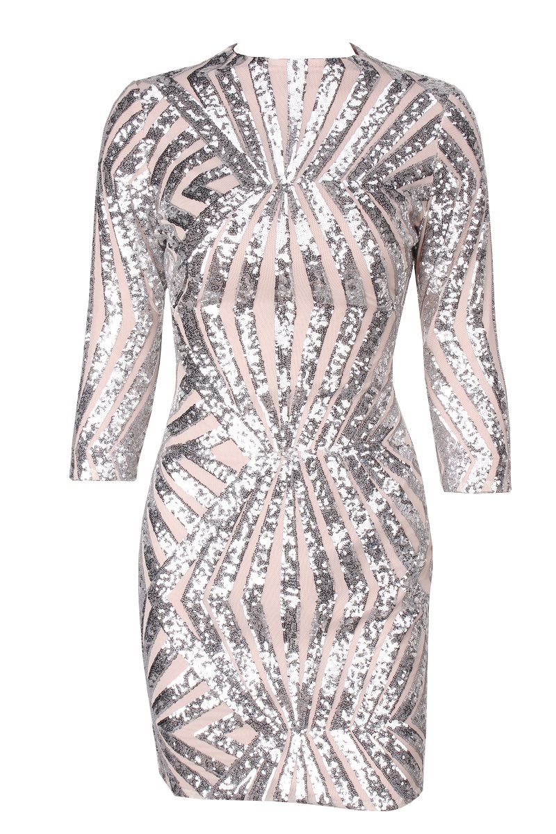 Silver Geometric Sequined and Mesh Bodycon Dress