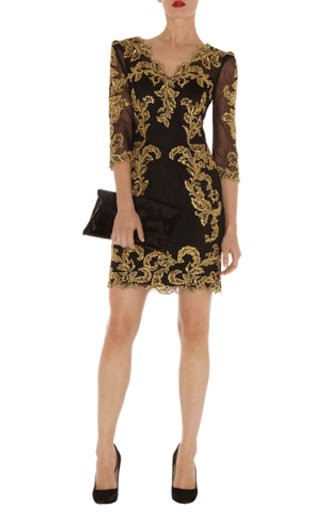 Black bright gold embroidery customs v-neck