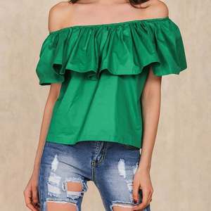 Green Shoulder Ruffles C...