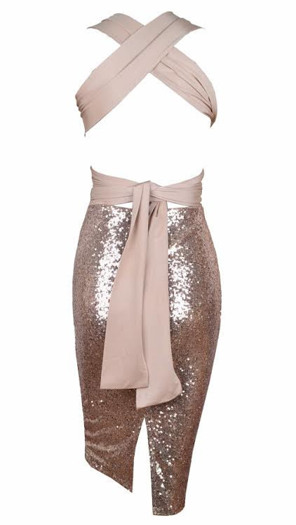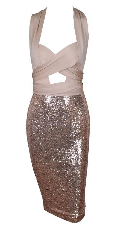Golden Sparkle Cutout Sequined Dress