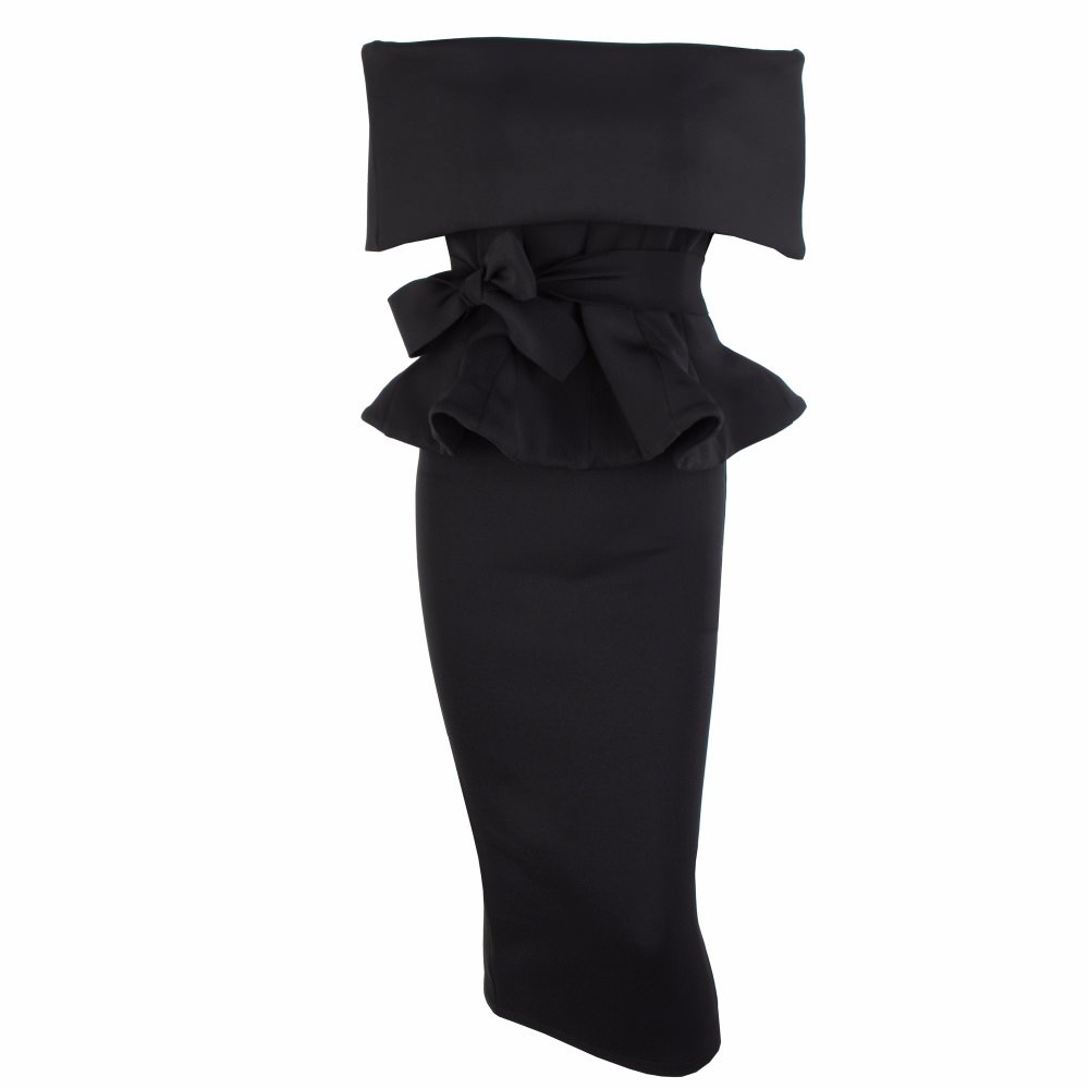 Black Off Shoulder Peplum Bodycon Two Pieces Bow Belt Sets