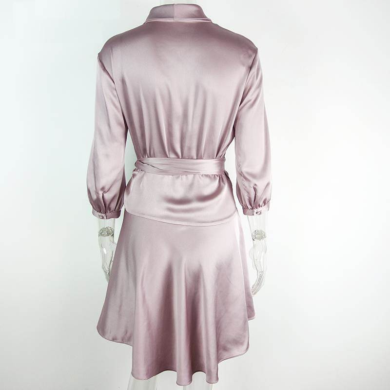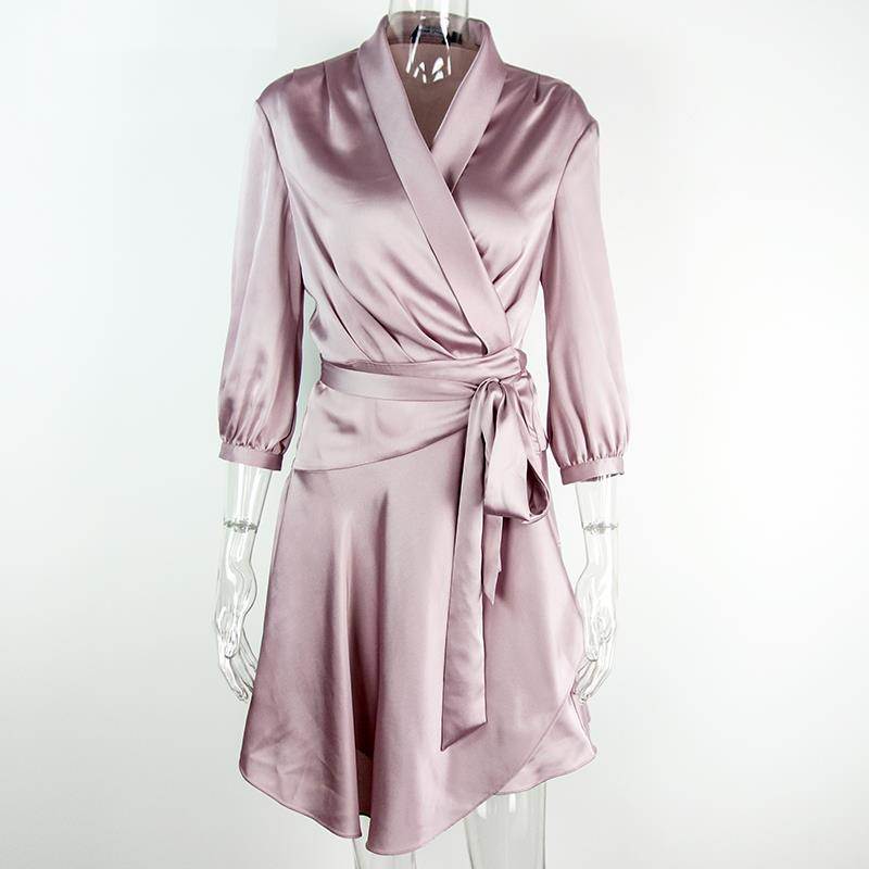 Purple Silver Elegent Silk Wrap Dress