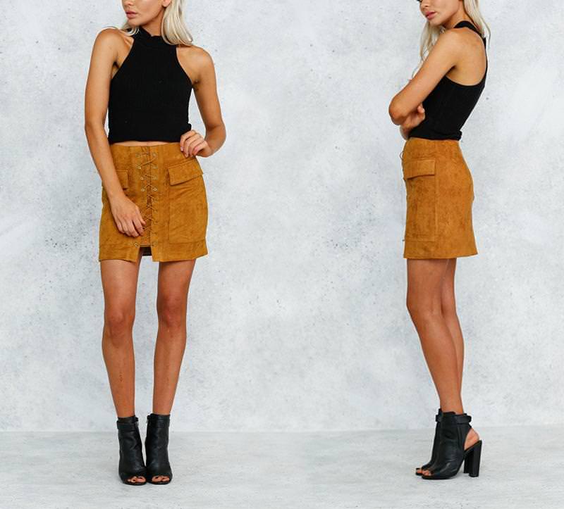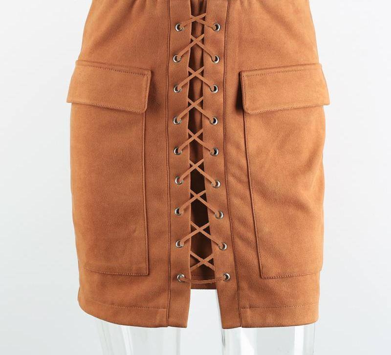 Suede Leather Lace Up Skirt